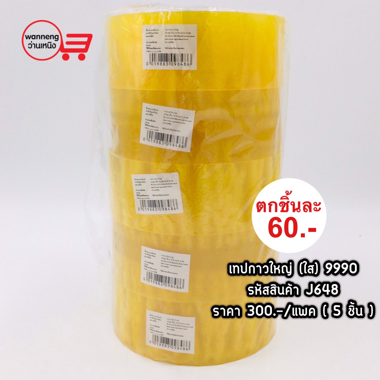 J648 เทปกาวใหญ่ (ใส) 9990 1 แพค 5 ชิ้น