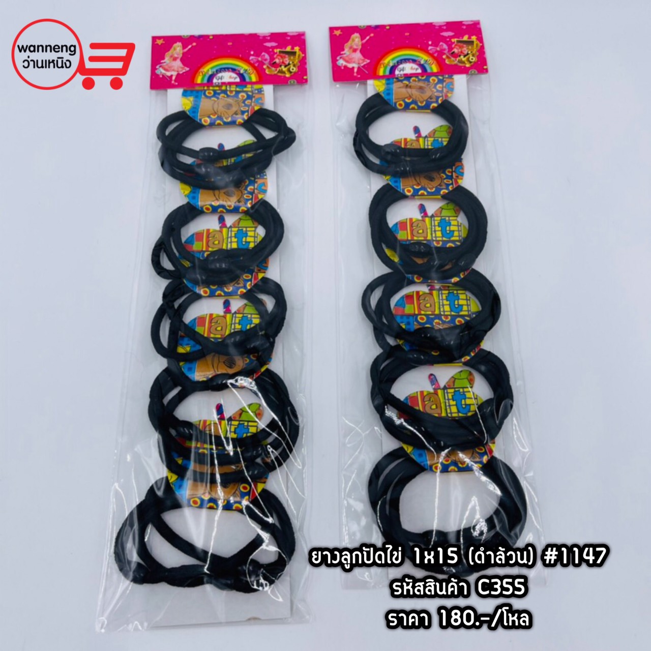 C355 ยางลูกปัดไข่ 1x15 (ดำล้วน) #1147 1 โหล