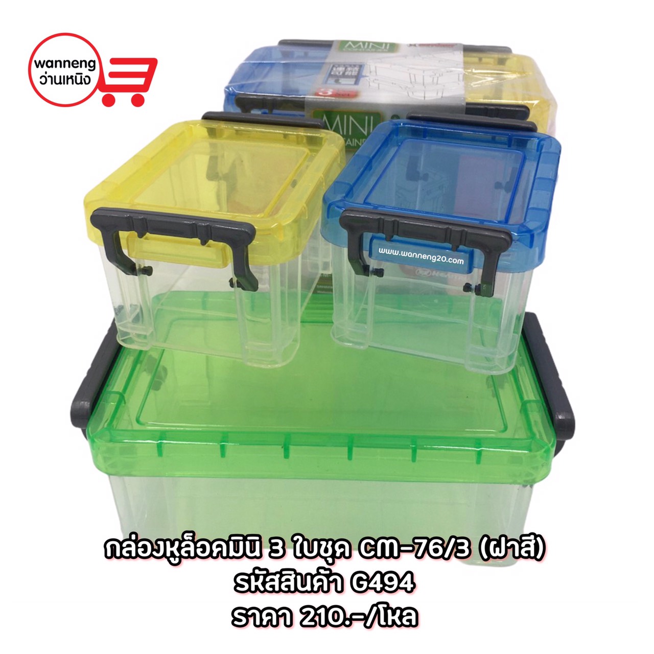 G494 กล่องหูล็อคมินิ 3 ใบ ชุด CM-76/3 (ฝาสี) 1 โหล