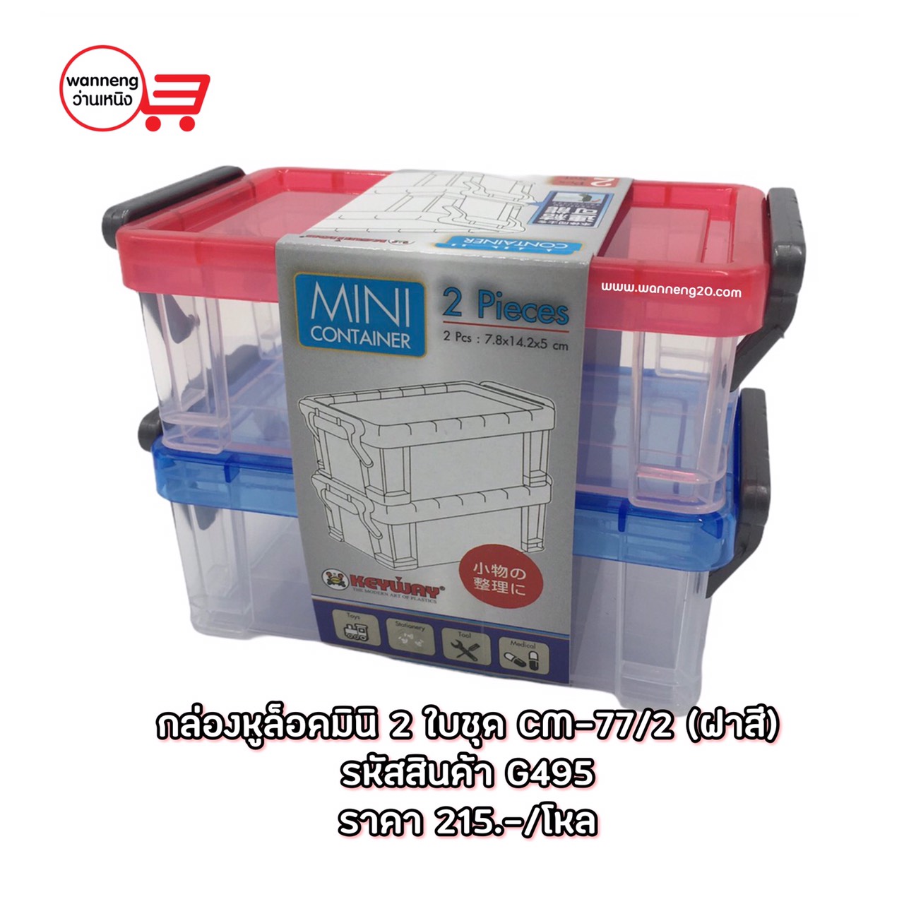 G495 กล่องหูล็อคมินิ 2 ใบ ชุด CM-77/2 (ฝาสี) 1 โหล