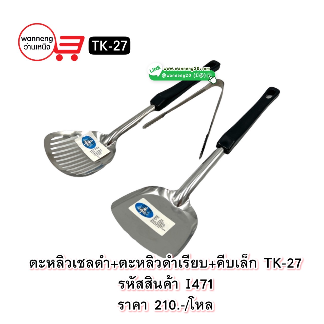 I471 ตะหลิวเชลดำ+ตะหลิวดำเรียบ+คีบเล็ก TK-27 1 โหล