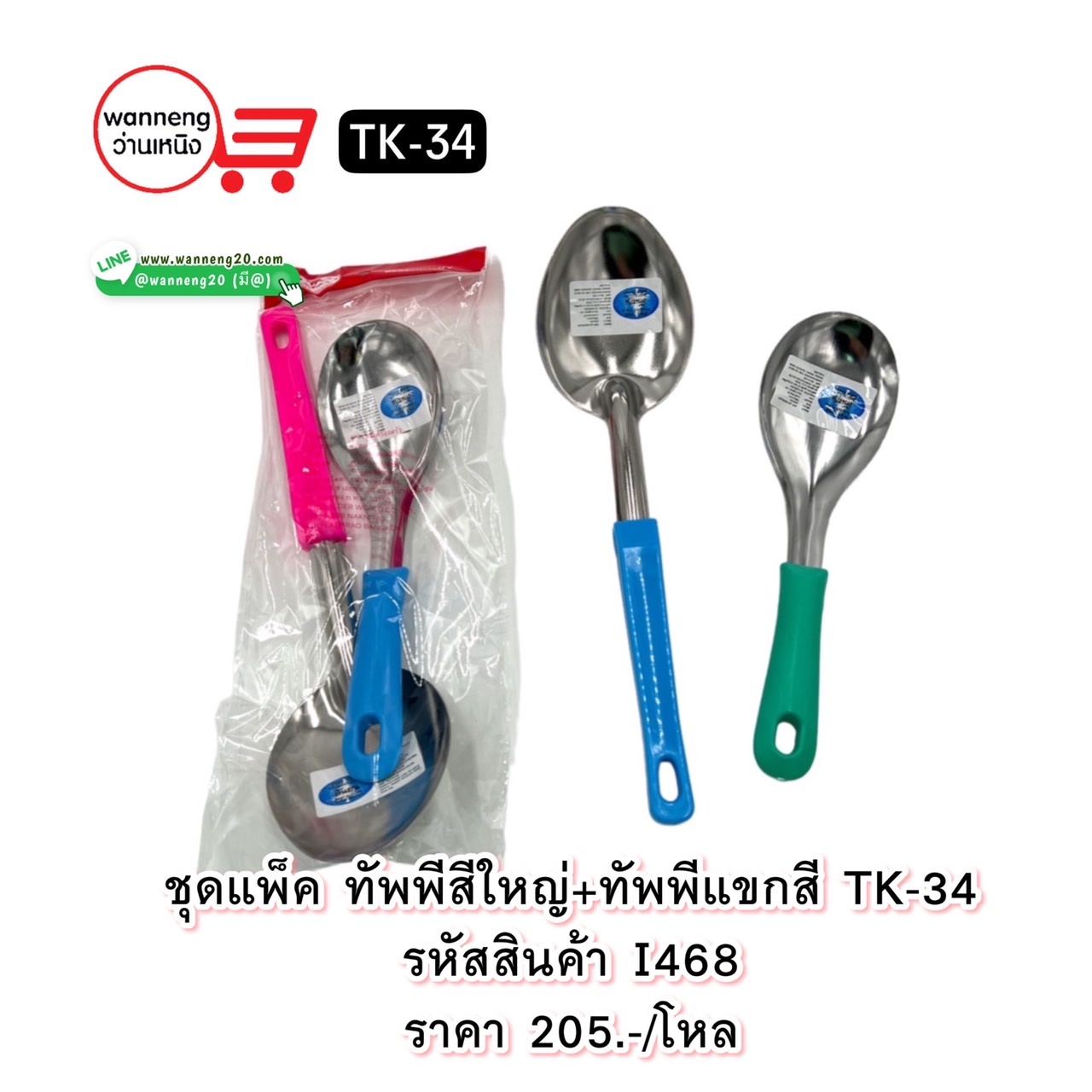 I468 ชุดแพ็ค ทัพพีสีใหญ่+ทัพพีแขกสีTK-34 1 โหล