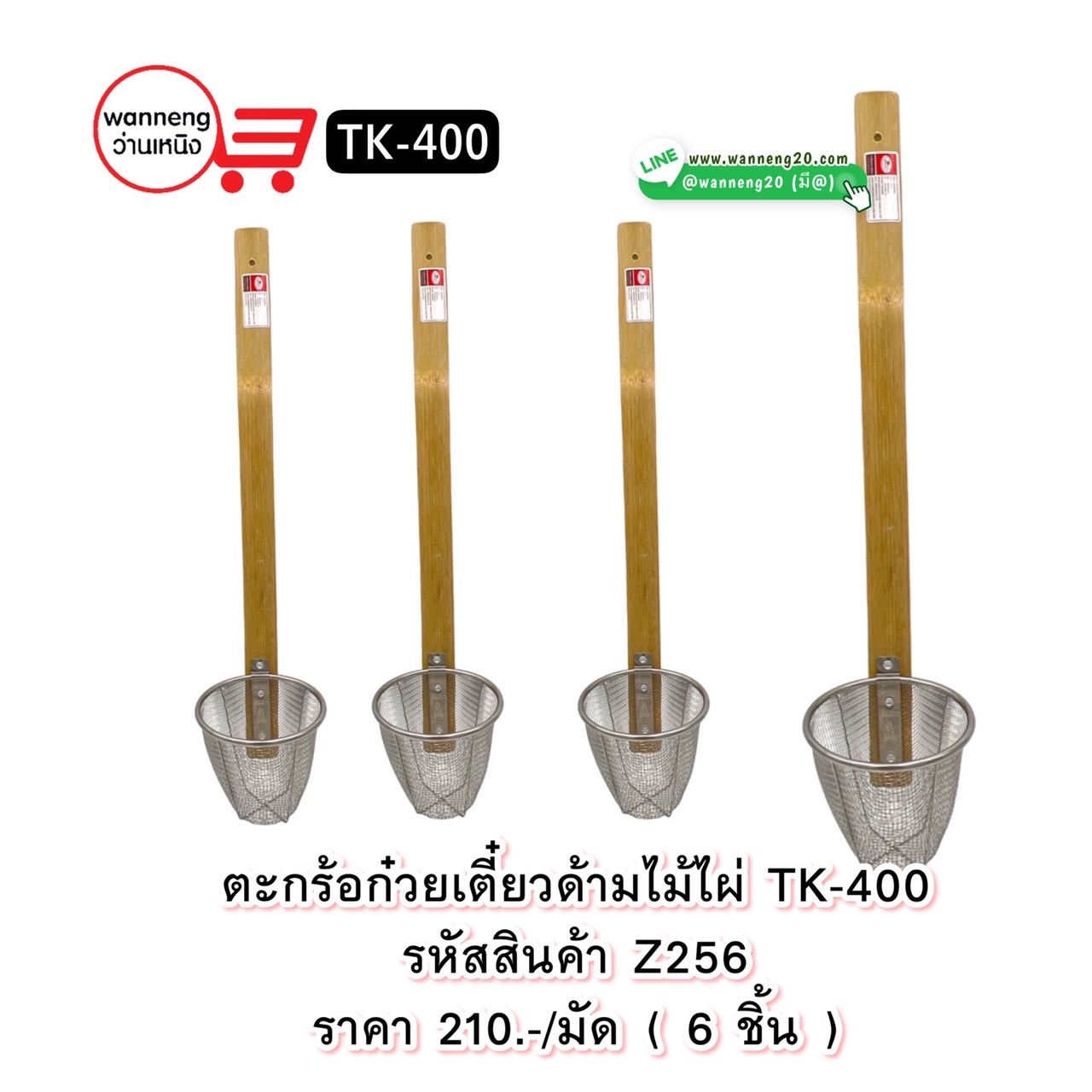 Z256 ตะกร้อก๋วยเตี๋ยวด้ามไม้ไผ่ TK-400 1 มัด 6 ชิ้น