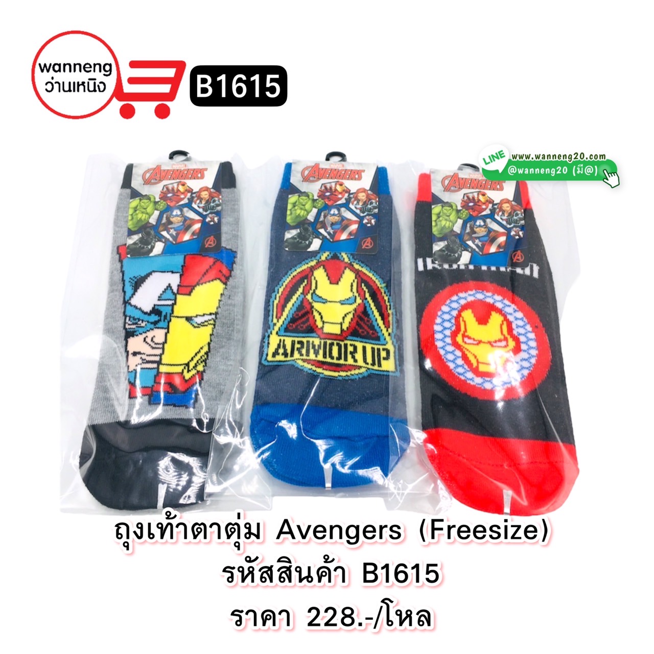 B1615 ถุงเท้าตาตุ่ม Avengers (freesize) 1 โหล