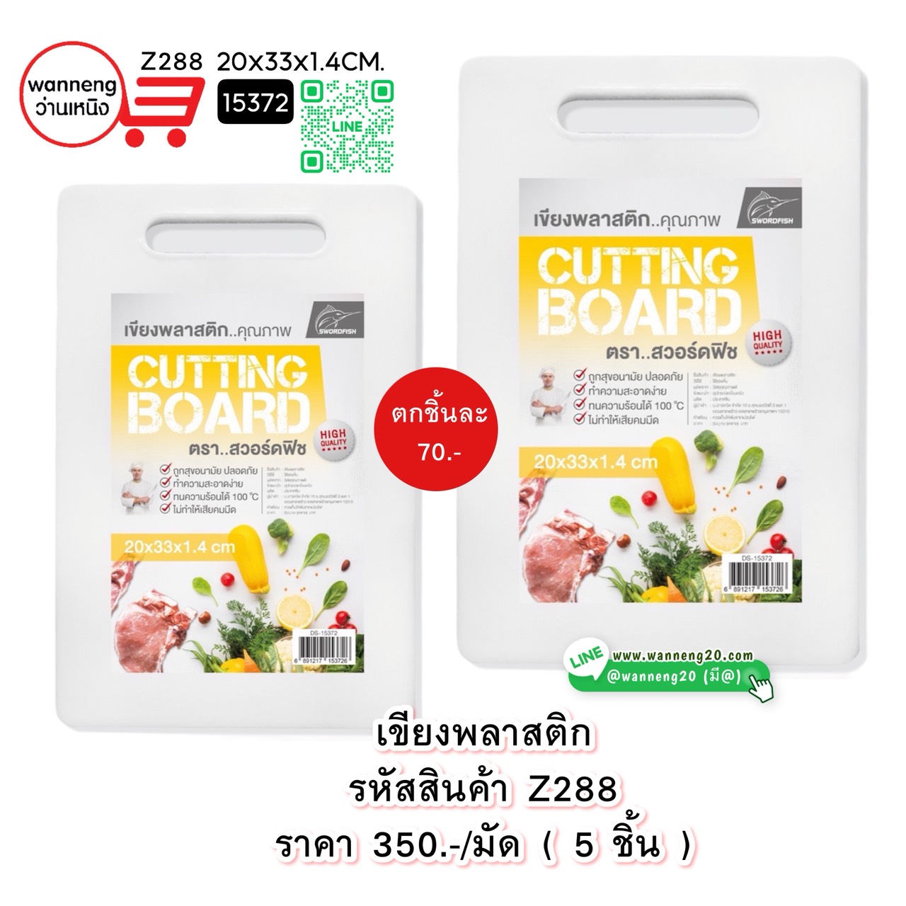 Z288 เขียงพลาสติก 20x33x1.4 cm. 15372 1มัด 5 ชิ้น