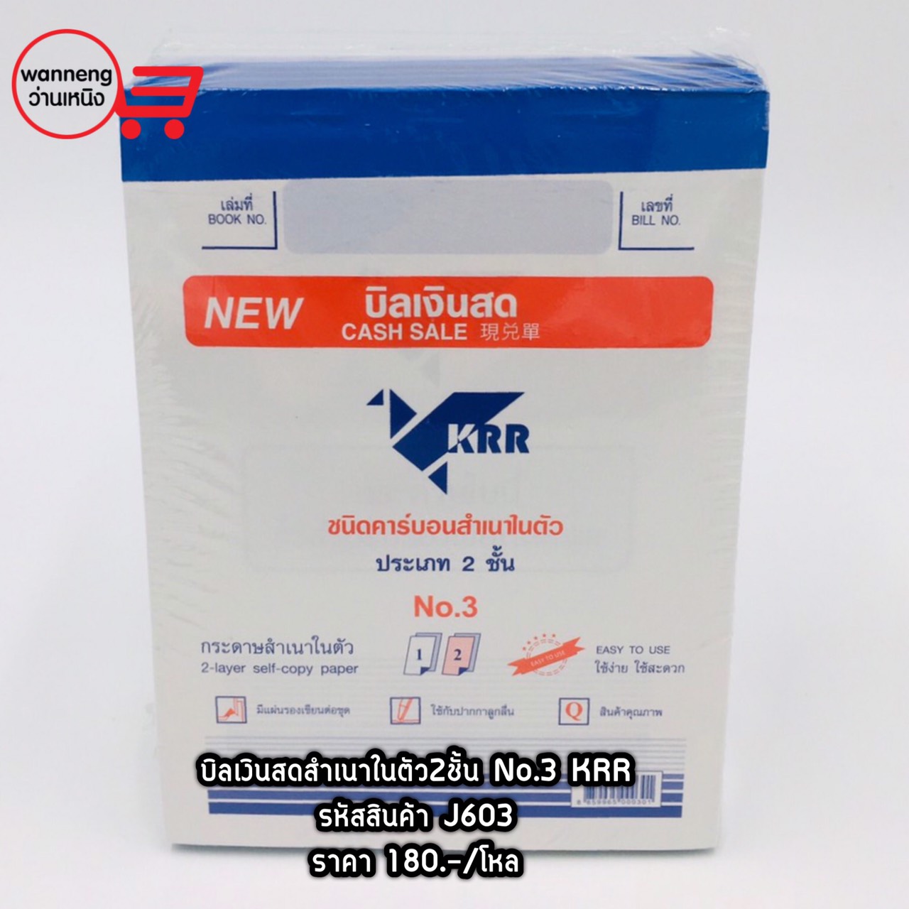 ๋J603 บิลเงินสดสำเนาในตัว 2 ชั้น No.3 KRR 1 โหล