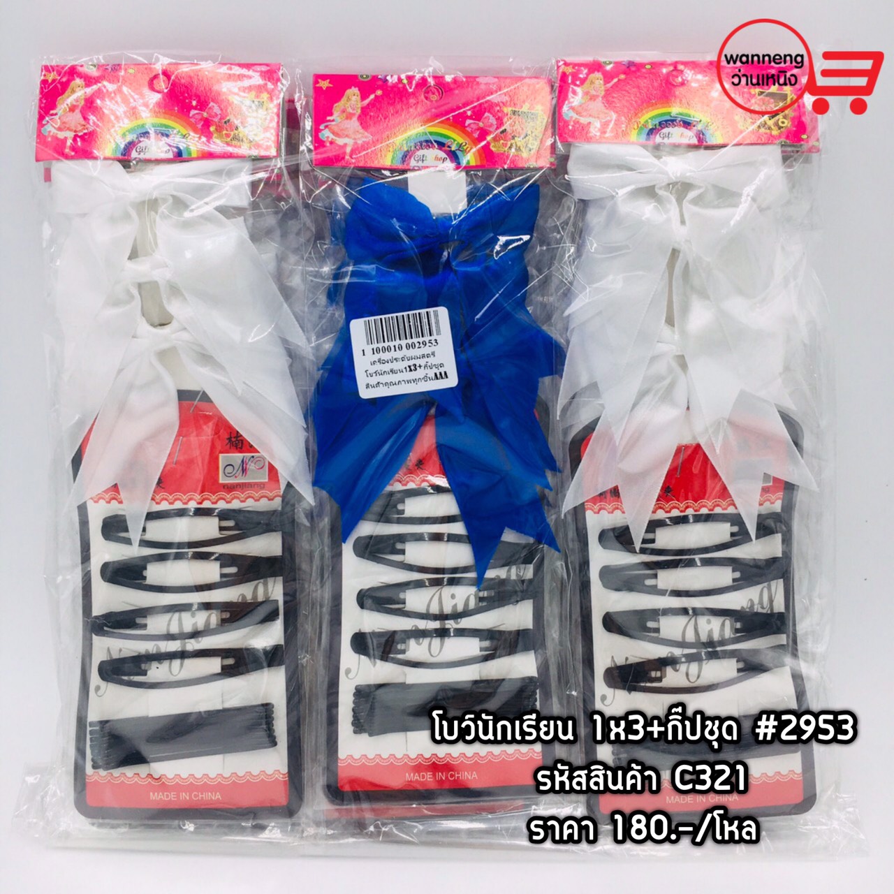 C321 โบว์นักเรียน 1x3+กิ๊ปชุด #2953 1 โหล
