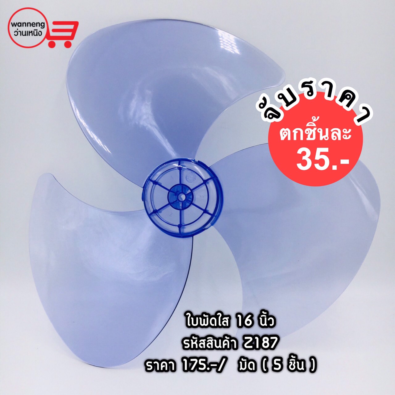 Z187 ใบพัดลมใส 16 นิ้ว 1 มัด บรรจุ 5 ชิ้น