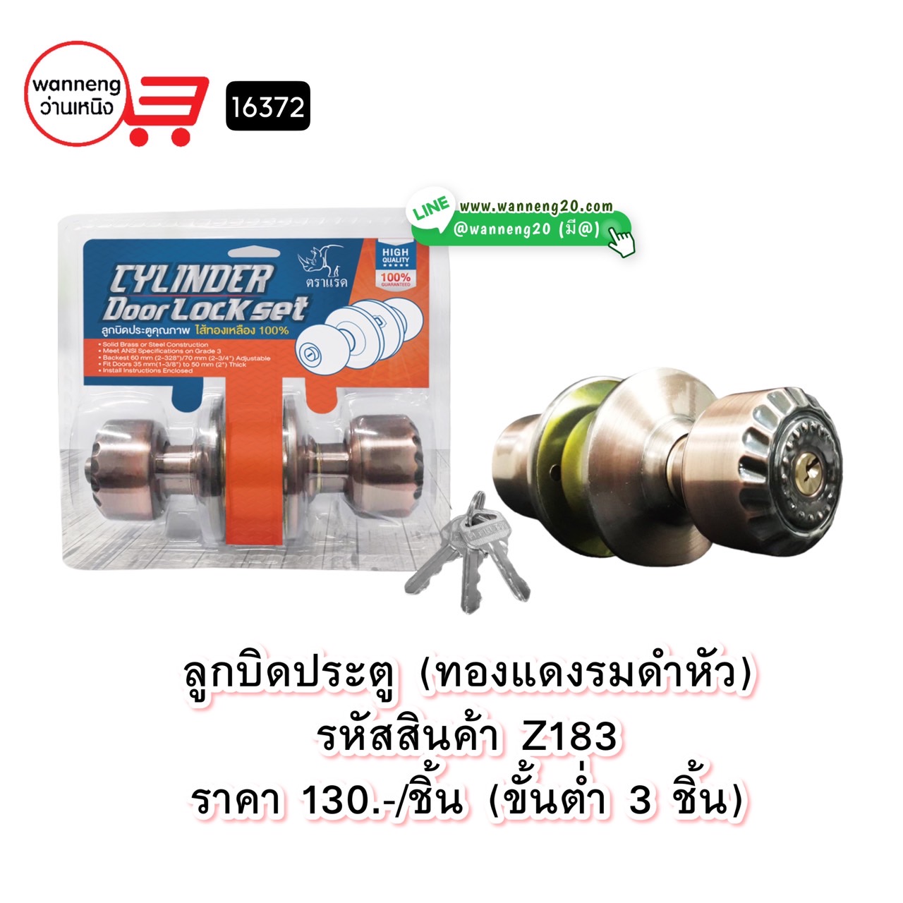 Z183 ลูกบิดประตู (ทองแดงรมดำหัว) 16372 ขั้นต่ำ 3 ชิ้น