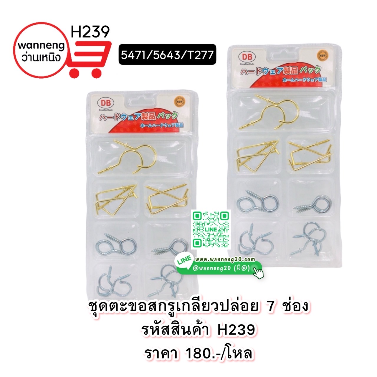 H239 ชุดตะขอสกรูเกลียวปล่อย (7 ช่อง ) 5471 / 5643 / T277 1 โหล
