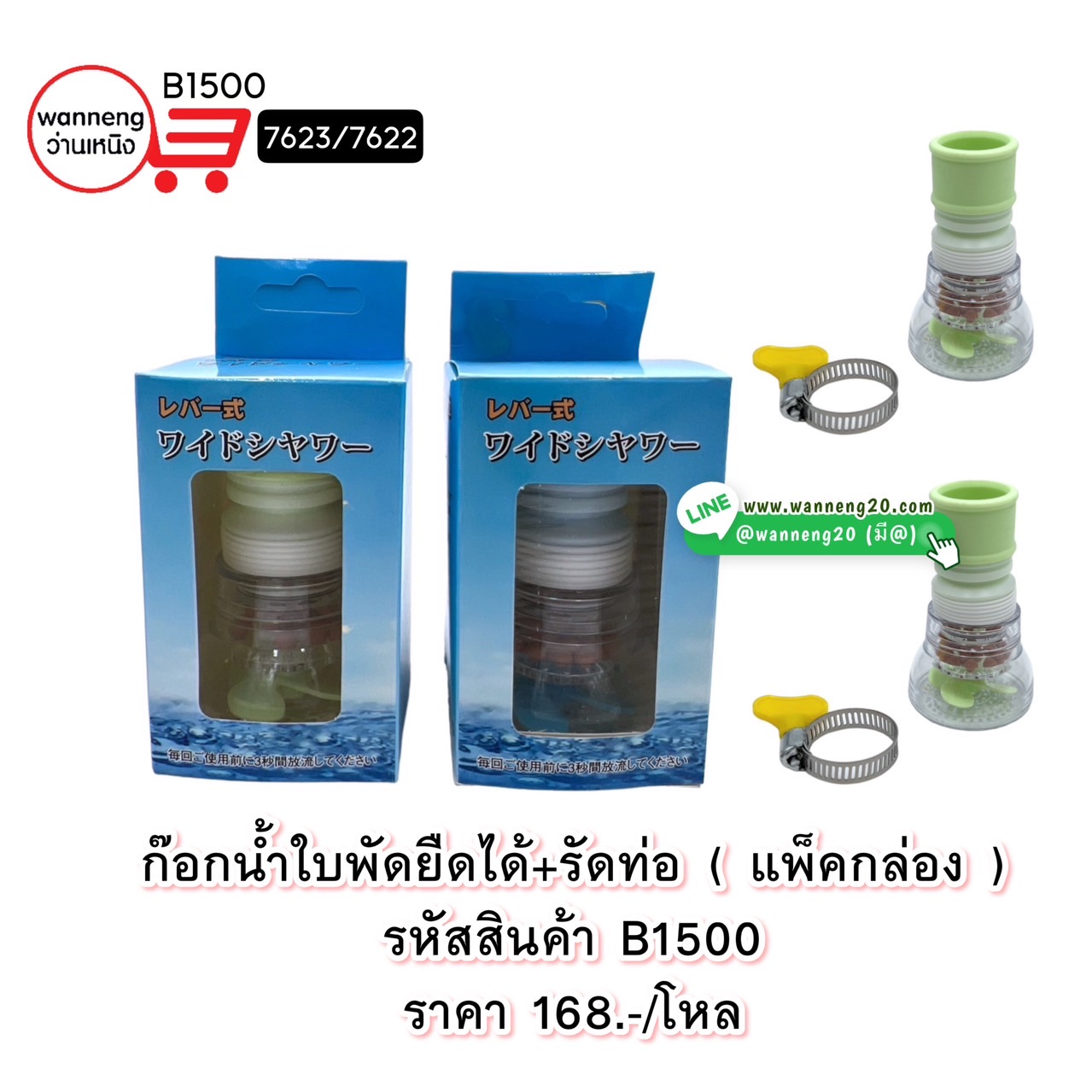 B1500 ก๊อกน้ำใบพัดยืดได้+รัดท่อ (แพ็คกล่อง) 1 โหล
