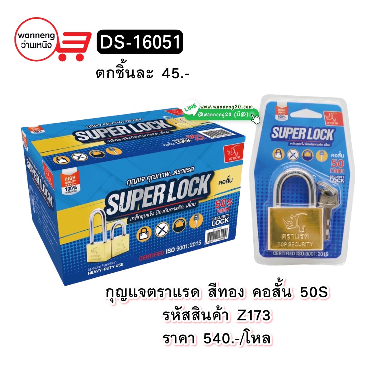 Z173 กุญแจตราแรดสีทอง คอสั้น 50S #16051 1 โหล