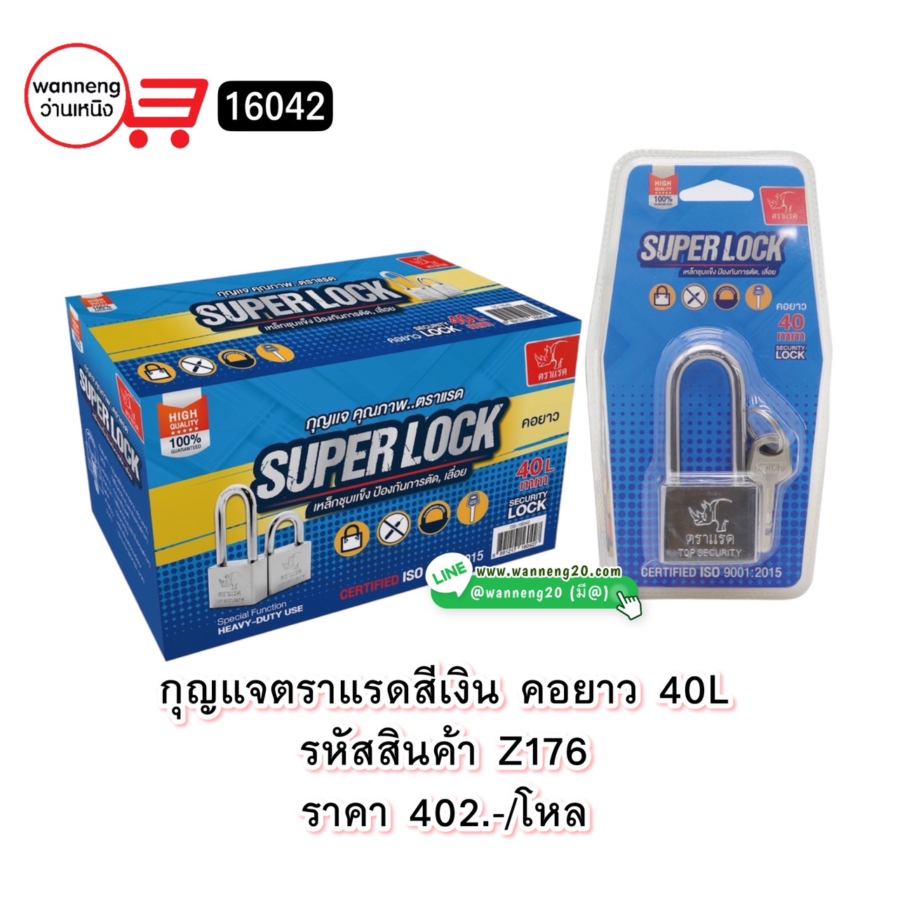 Z176 กุญแจตราแรดสีเงิน คอยาว 40L #16042 1 โหล