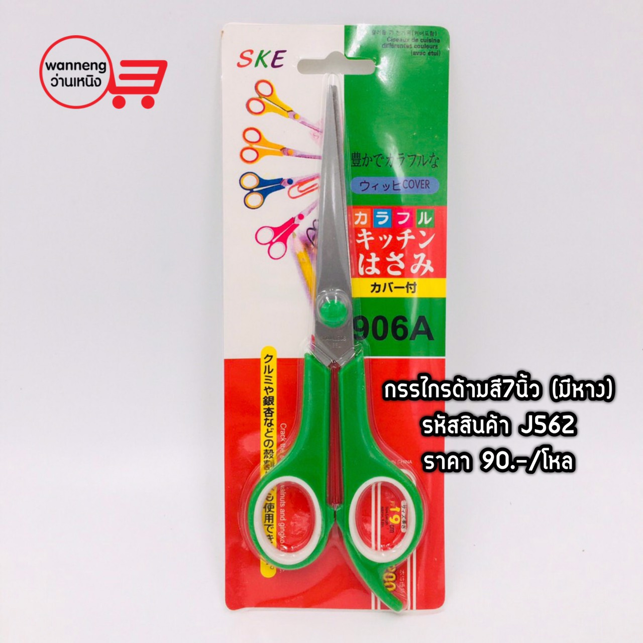 J562 กรรไกรด้ามสี 7 นิ้ว (มีหาง) 1 โหล