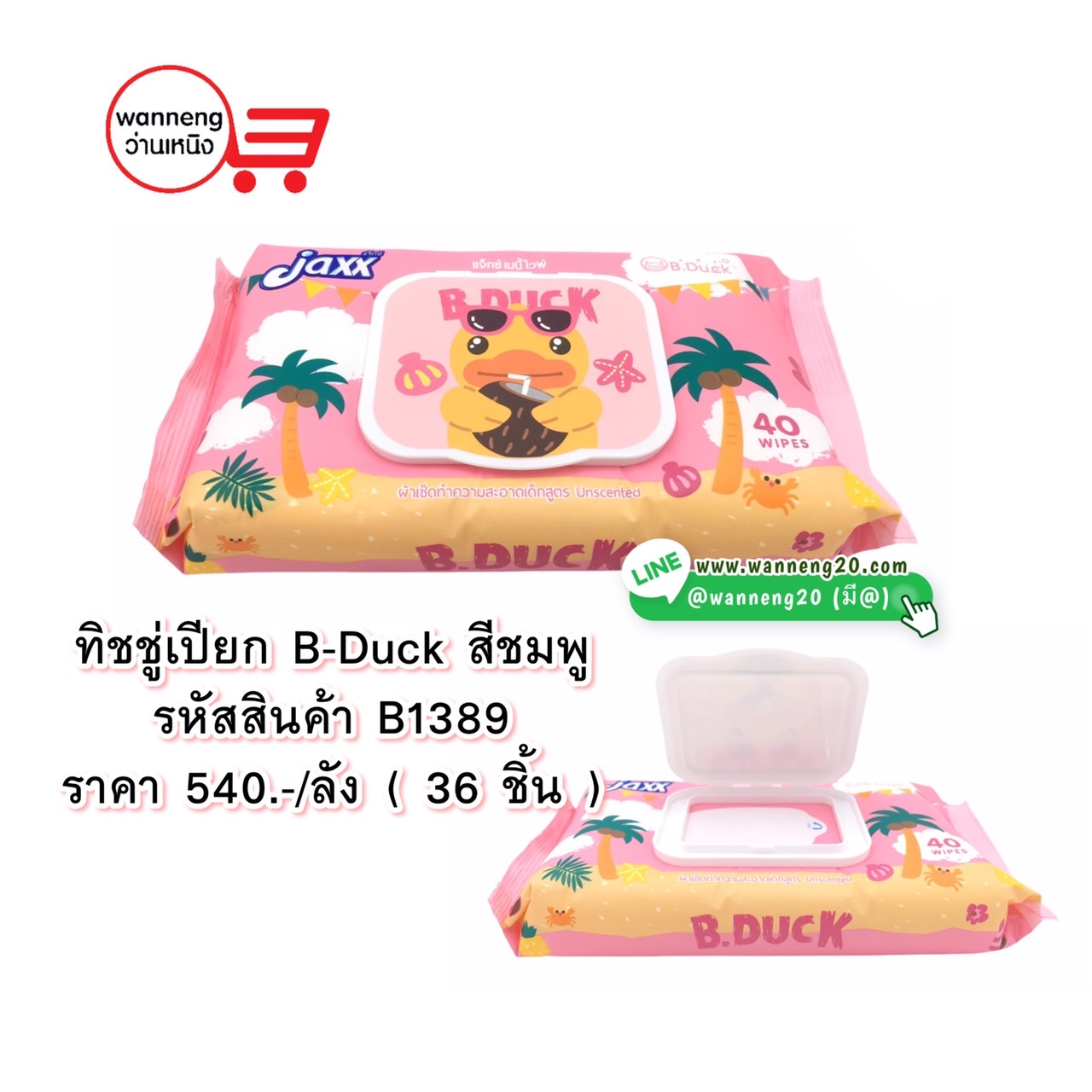 B1389 ทิชชู่เปียก B-duck สีชมพู 1 ลัง บรรจุ 36 ชิ้น