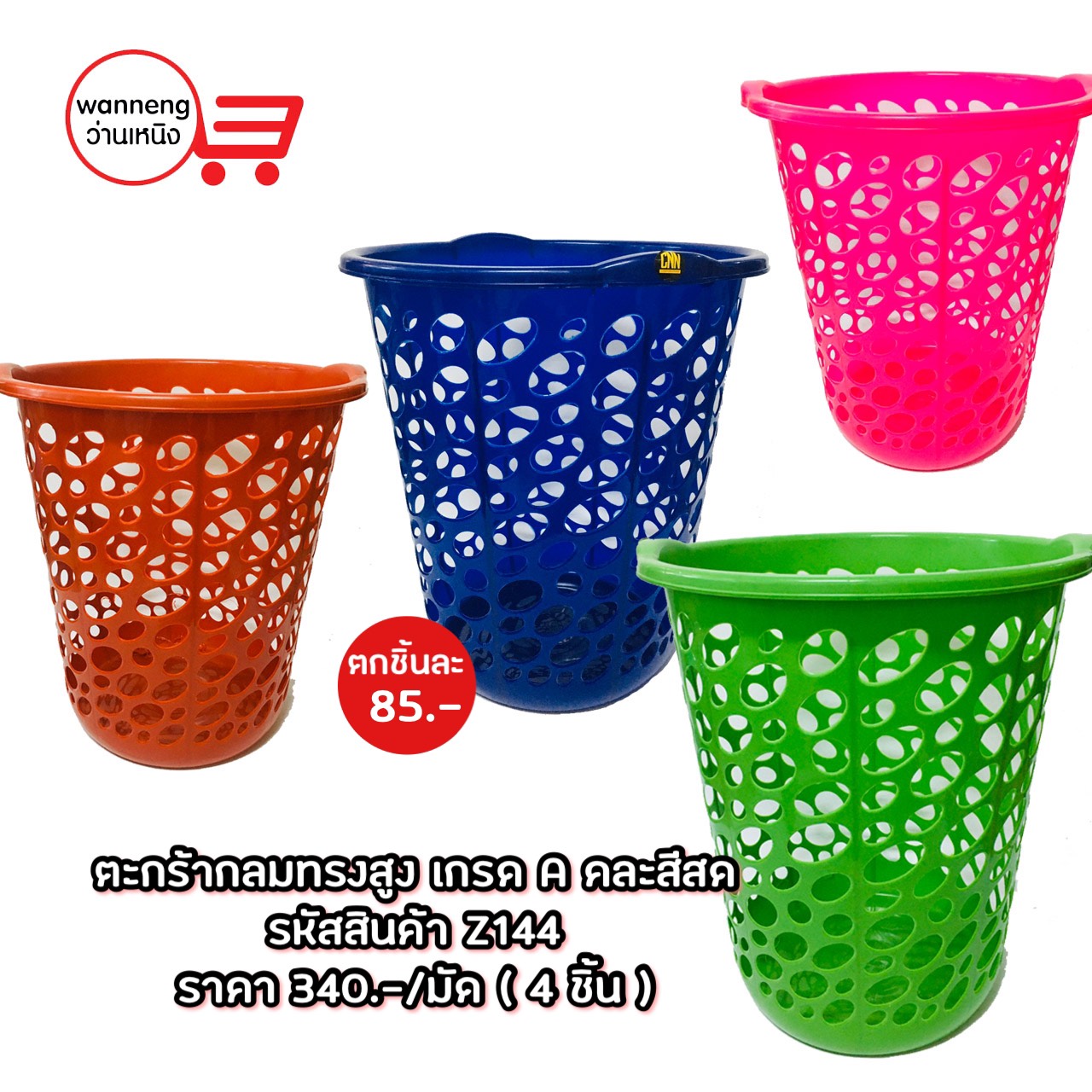 Z144 ตะกร้ากลมทรงสูง เกรด A คละสีสด 1 มัด 4 ชิ้น