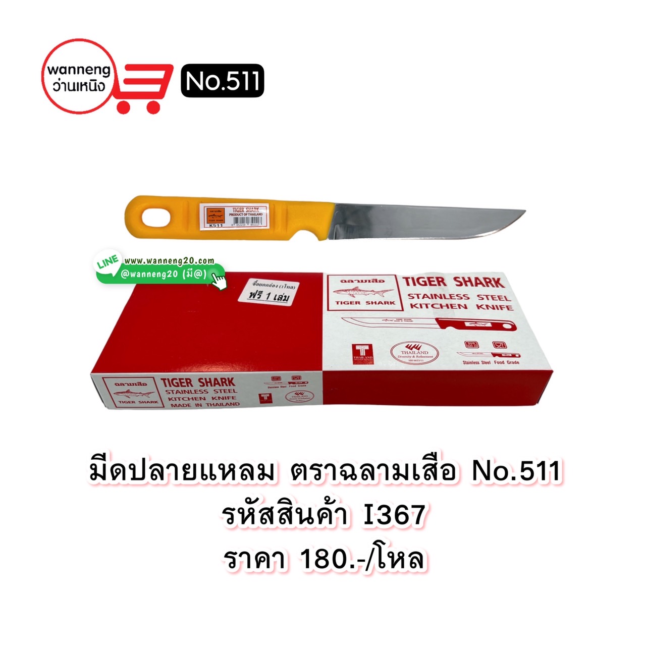 I367 มีดปลายแหลม ตราฉลามเสือ No.511 1 โหล