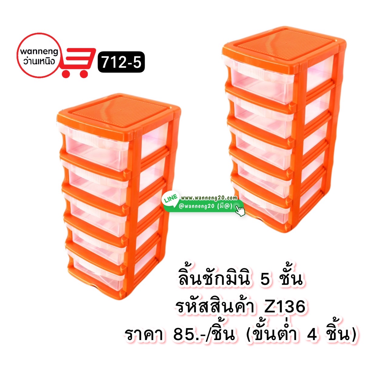 Z136 ลิ้นชักมินิ 5 ชั้น 712-5 1 มัด บรรจุ 4 ชิ้น