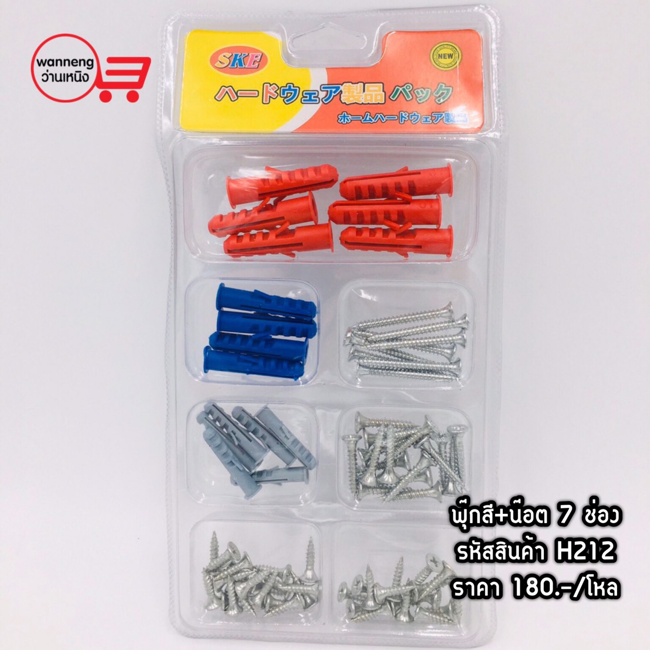 H212 พุ๊กสี+น๊อต 7 ช่อง 1 โหล
