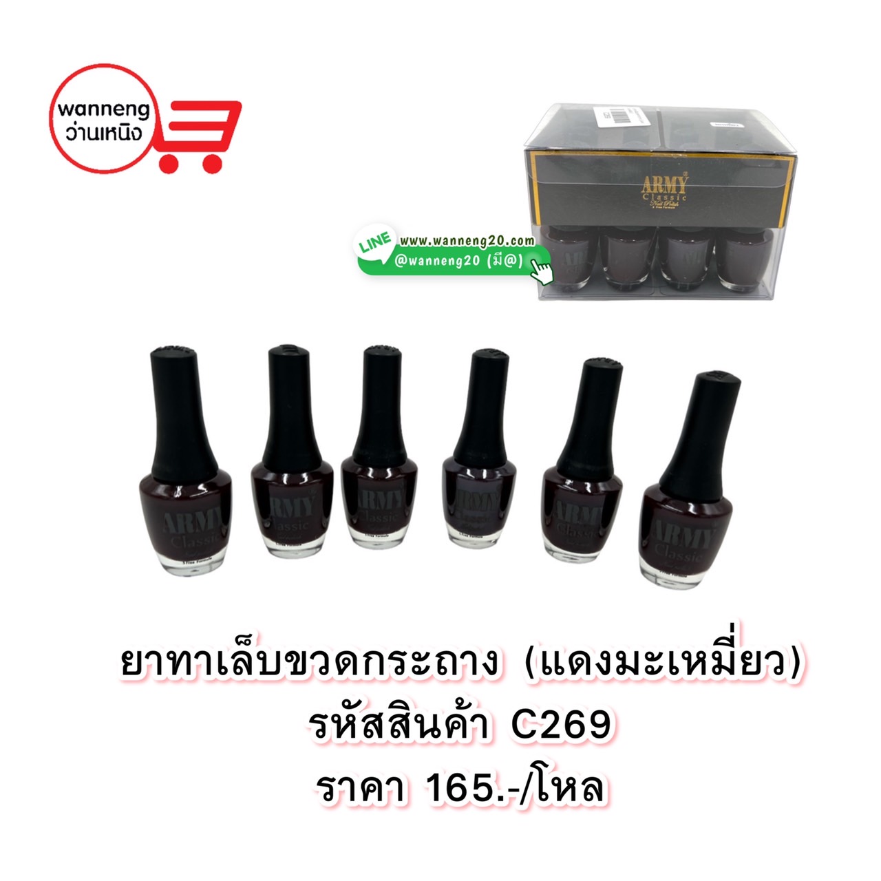 C269 ยาทาเล็บขวดกระถาง (แดงมะเหมี่ยว) 1 โหล