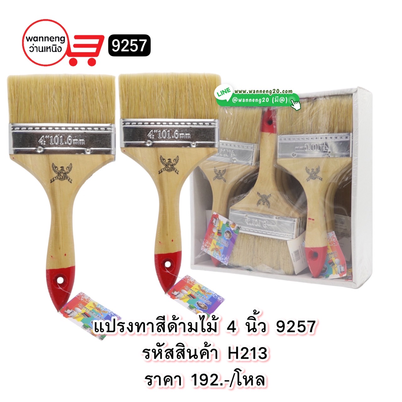 H213 แปรงทาสีด้ามไม้ 4 นิ้ว 9257 1 โหล