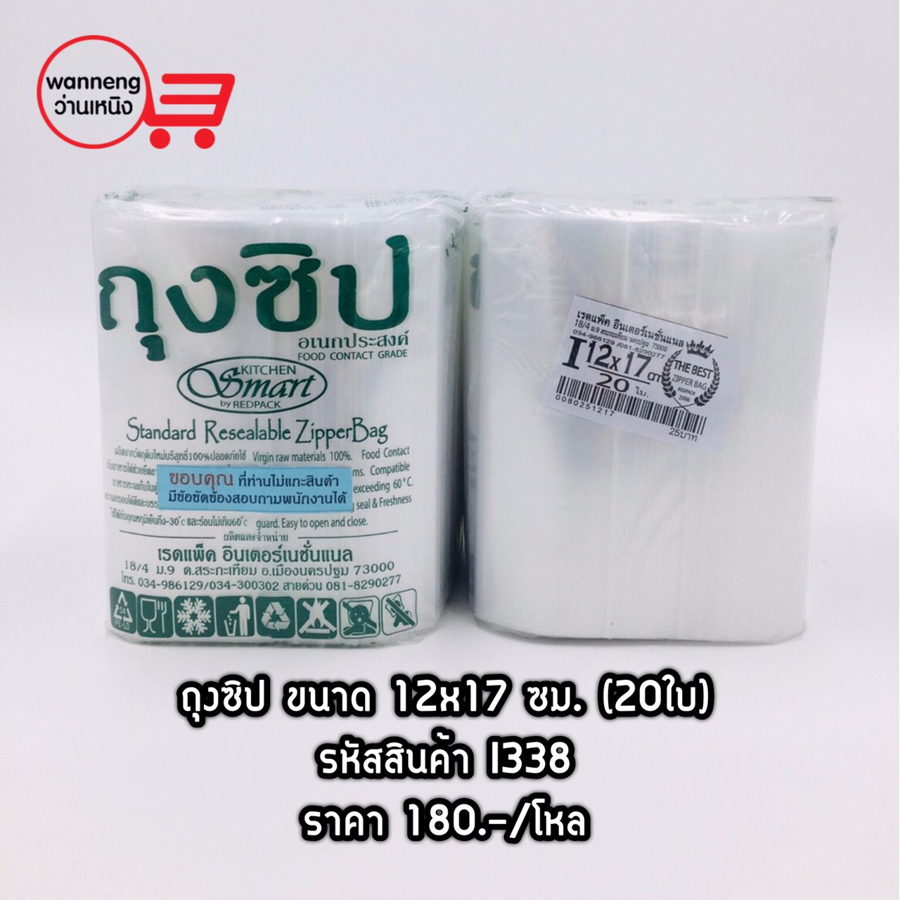 I338 ถุงซิป ขนาด 12x17 ซม. (20ใบ) 1 โหล