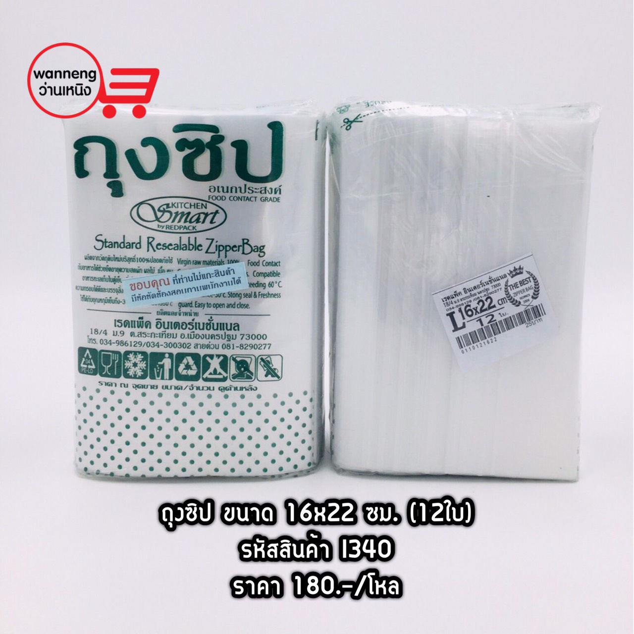 I340 ถุงซิป ขนาด 16x22 ซม. (12ใบ) 1 โหล
