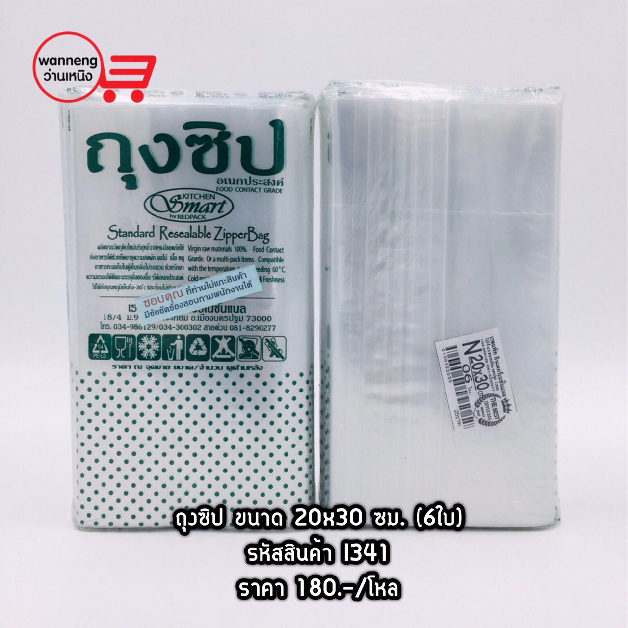 I341 ถุงซิป ขนาด 20x30 ซม. (6ใบ) 1 โหล