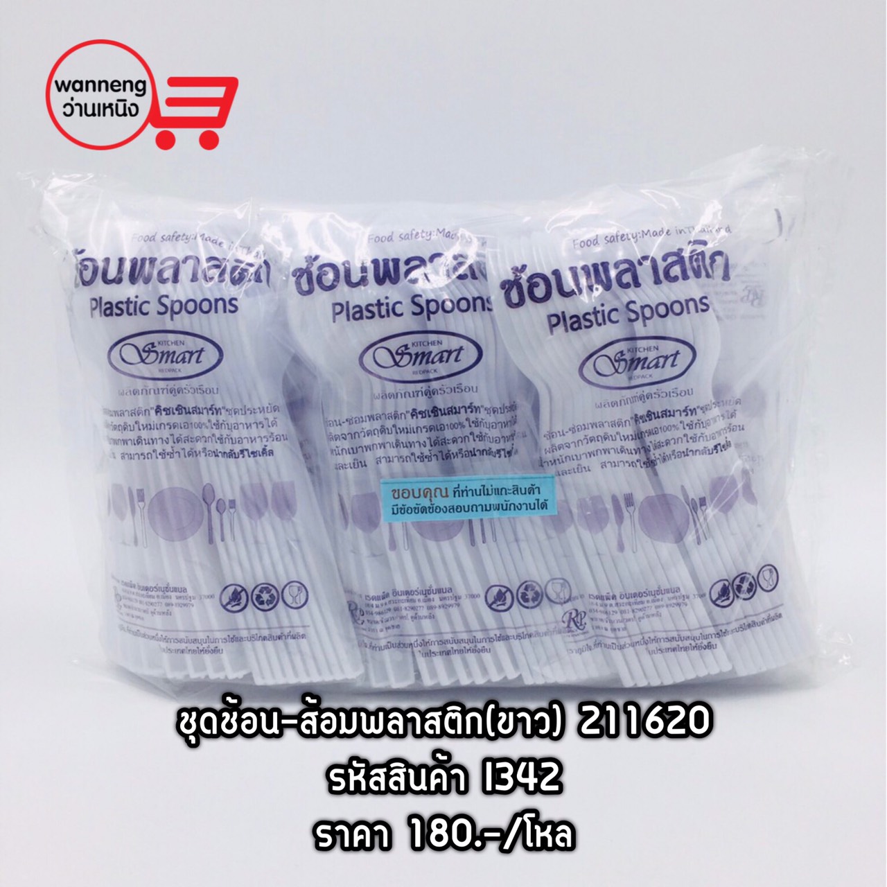 I342 ชุดช้อน-ส้อมพลาสติก (ขาว) 211620 1 โหล