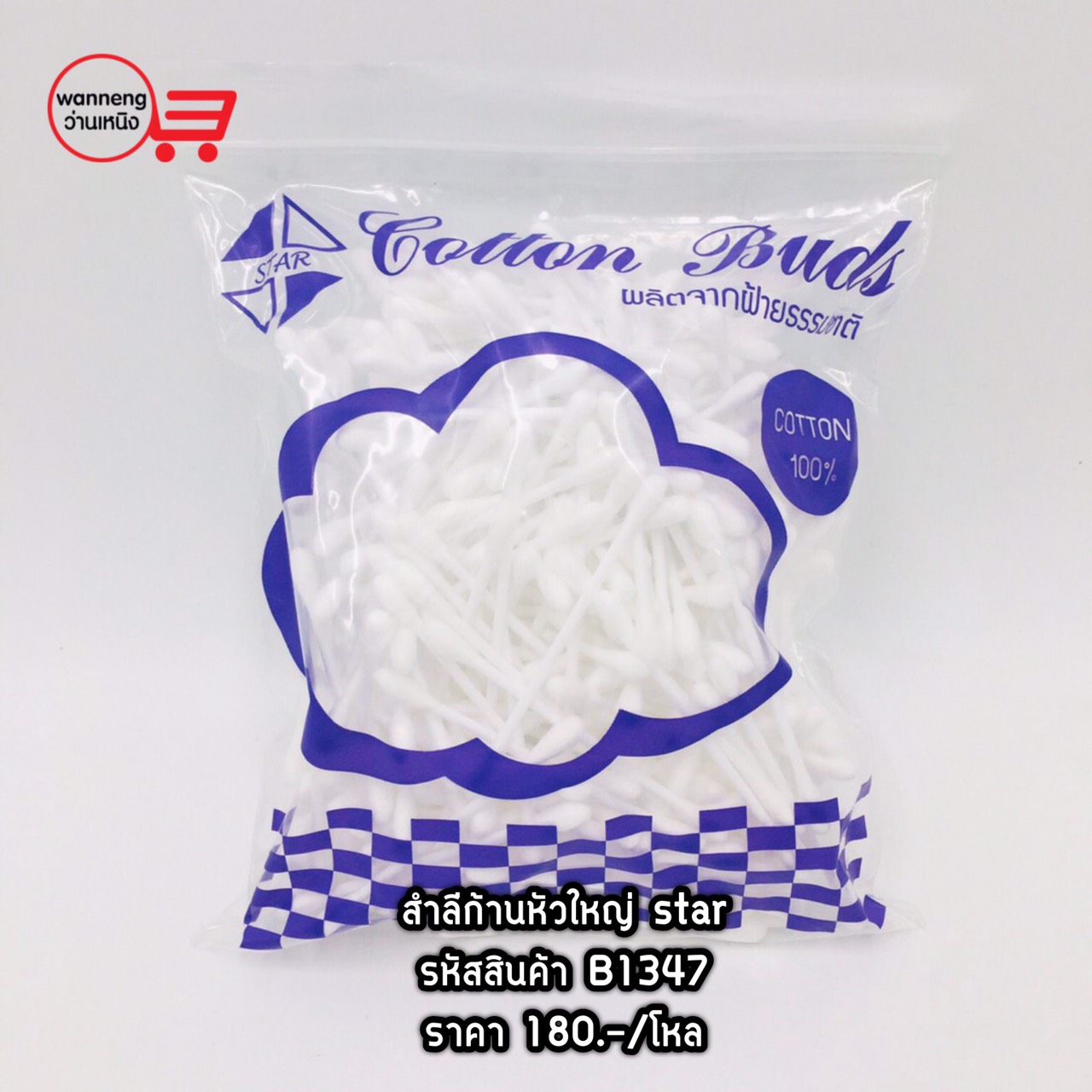 B1347 สำลีก้านหัวใหญ่ star 1 โหล