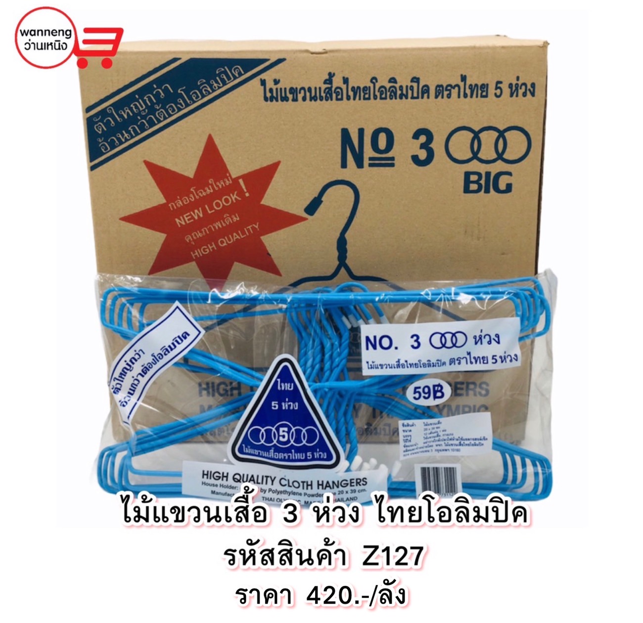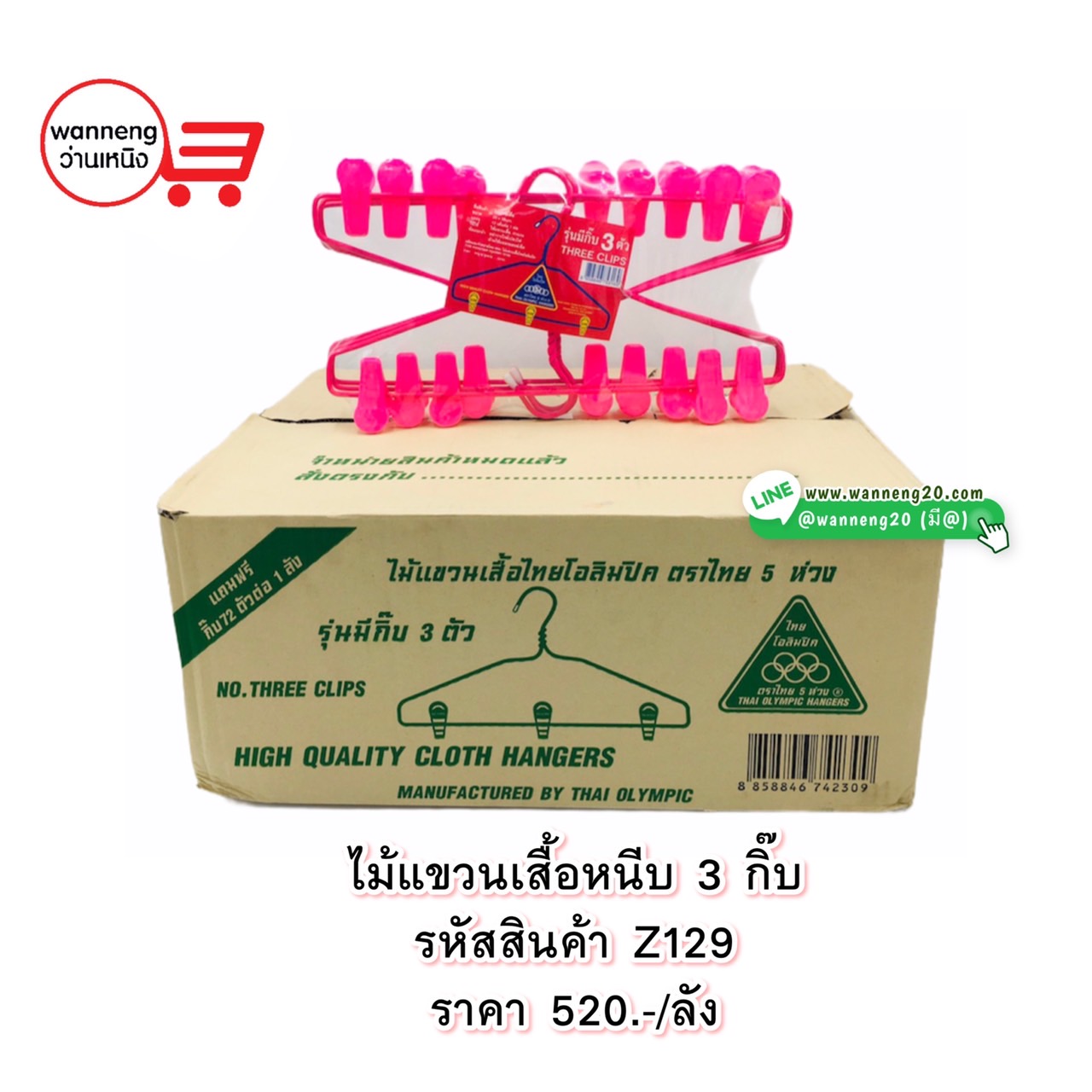 Z127 ไม้แขวนเสื้อ 3 ห่วง ไทยโอลิมปิค 1 ลัง