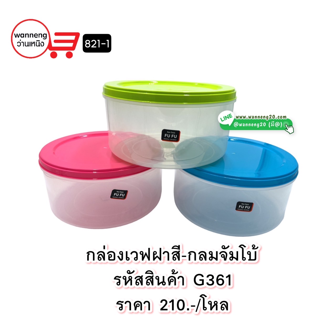 G361 กล่องเวฟฝาสี-กลมจัมโบ้ 821-1 1 โหล
