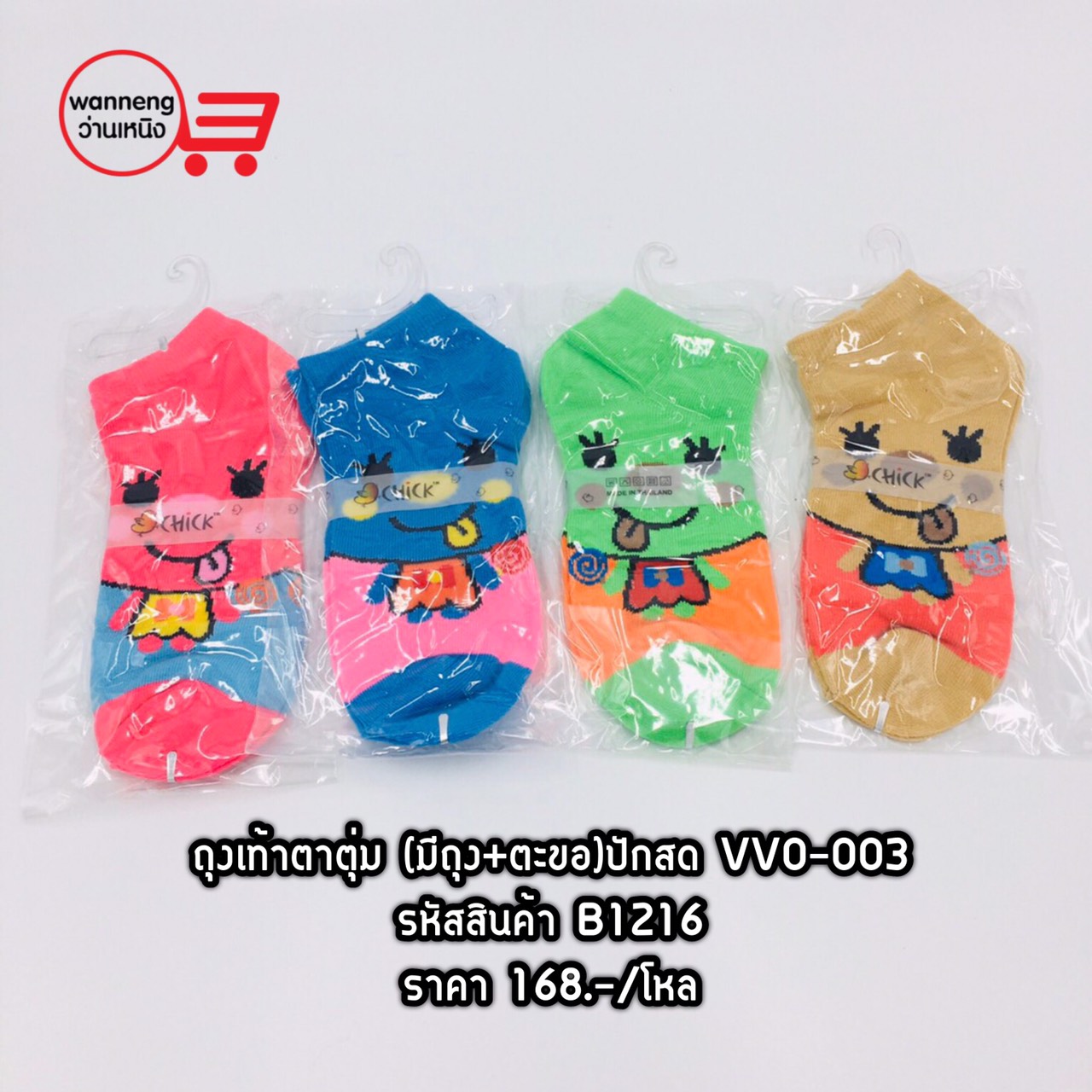B1216 ถุงเท้าตามตุ่ม (มีถุง+ตะขอ) ปักสด VV0-003 1 โหล