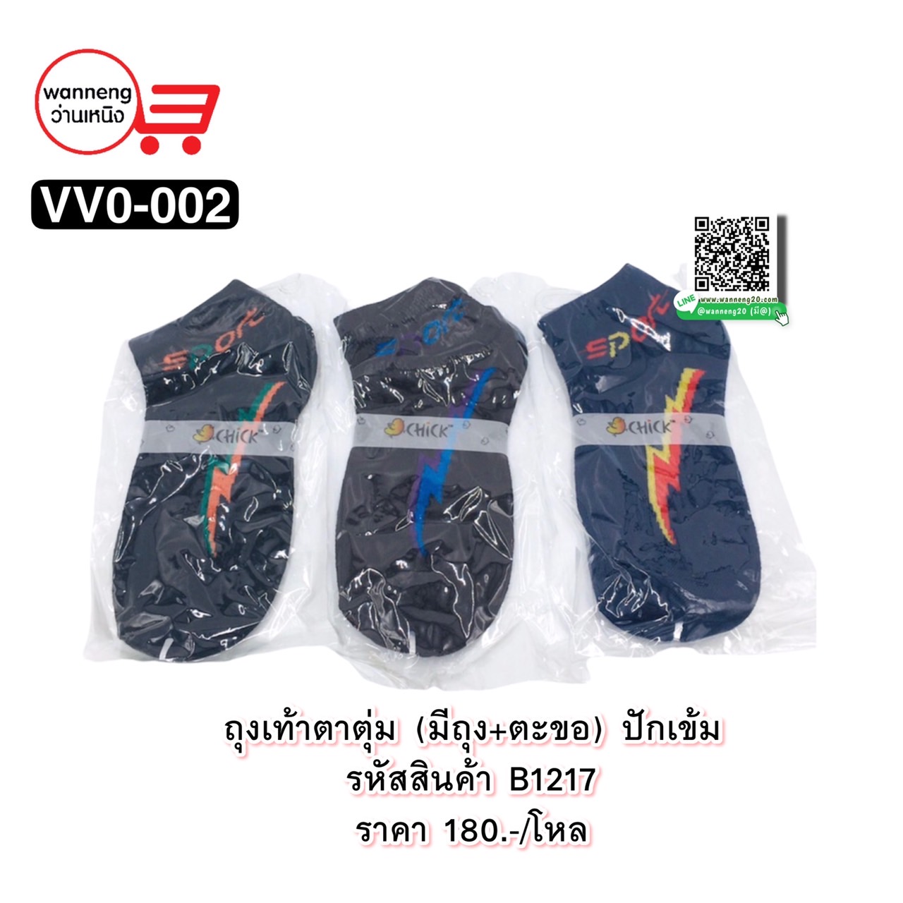 B1217 ถุงเท้าตาตุ่ม (มีถุง+ตะขอ) ปักเข้ม VV0-002 1 โหล