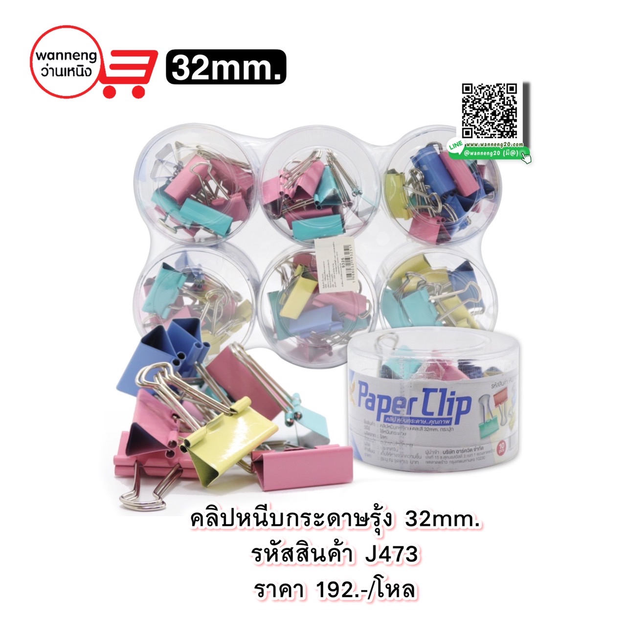 J473 คลิปหนีบกระดาษรุ้ง 32mm. 1 โหล