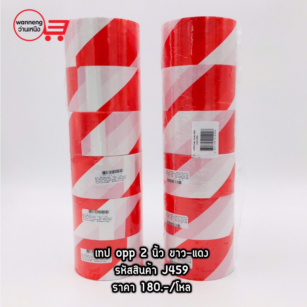 J459 เทป opp 2 นิ้ว ขาว-แดง 1 โหล