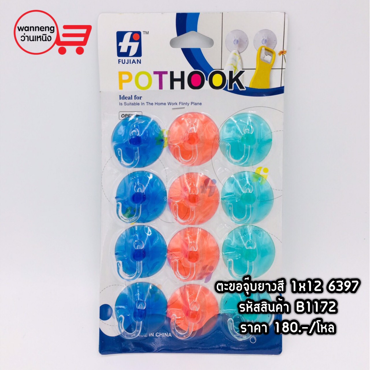 B1172 ตะขอจุ๊บยางสี 1x12 6397 1 โหล