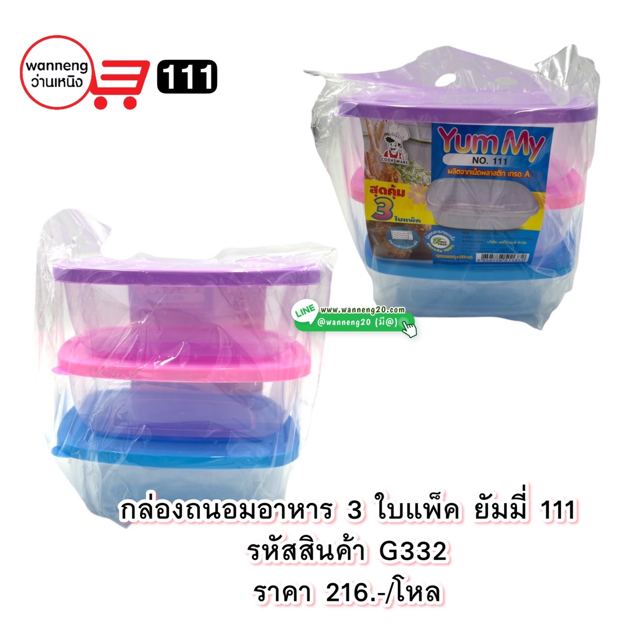 G332 กล่องถนอมอาหาร3ใบแพ็ค ยัมมี่ 111 1 โหล