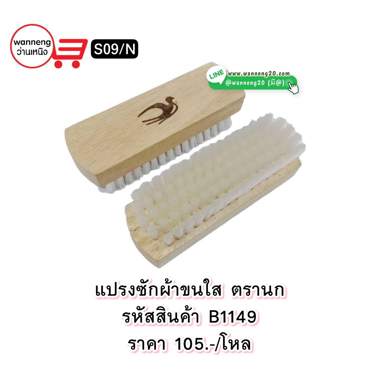 B1149 แปรงซักผ้าขนใส ตรานก S09/N 1 โหล