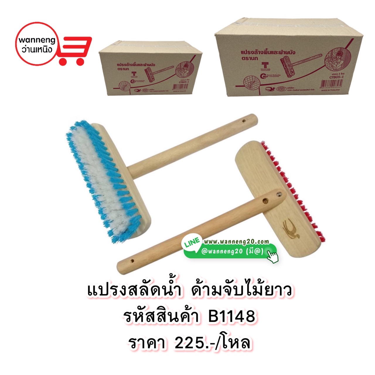 B1148 แปรงสลัดน้ำ ด้ามจับไม้ยาว 1 โหล