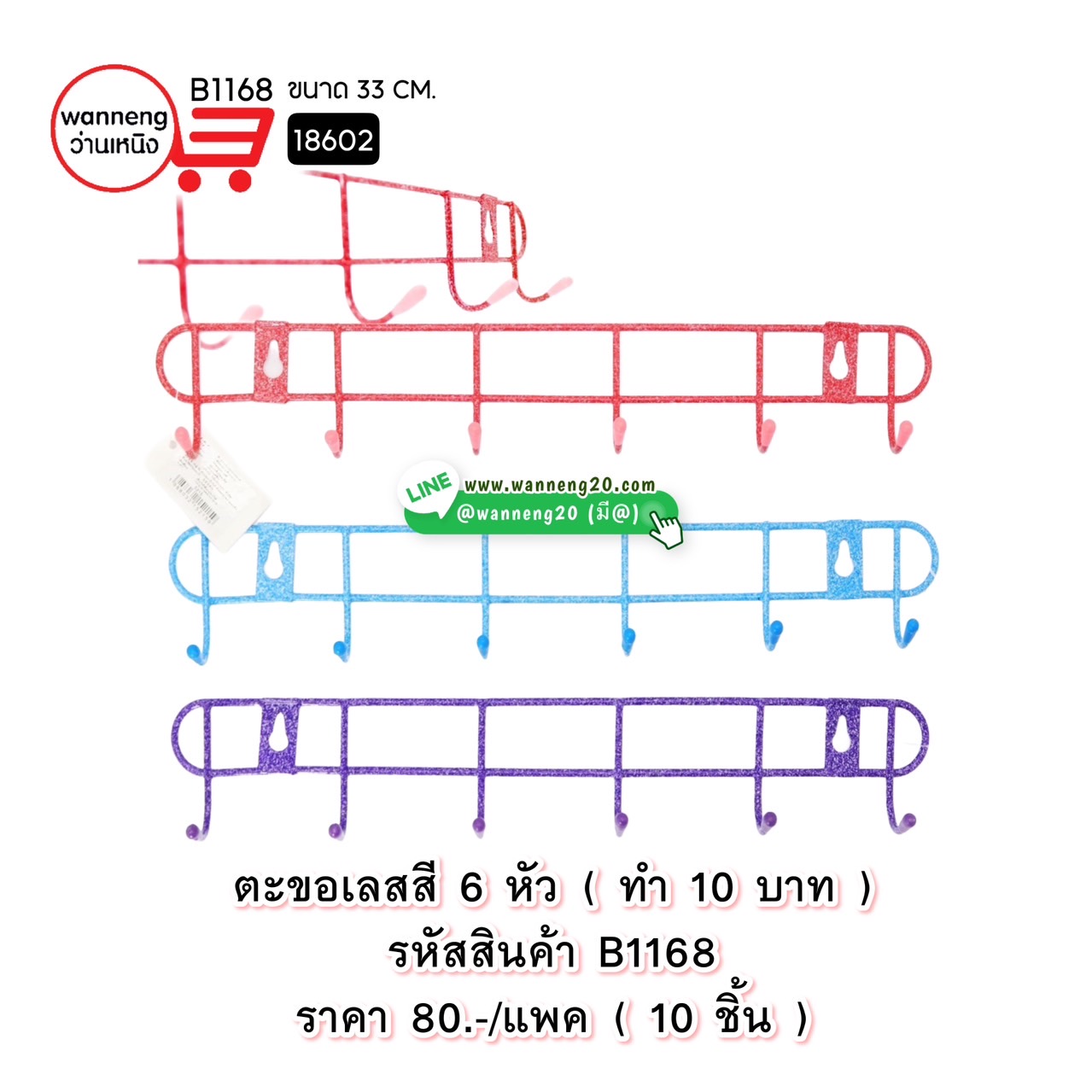 B1168 ตะขอเลสสี 6 หัว ( ทำ10บาท ) 18602 1 แพค 10 ชิ้น