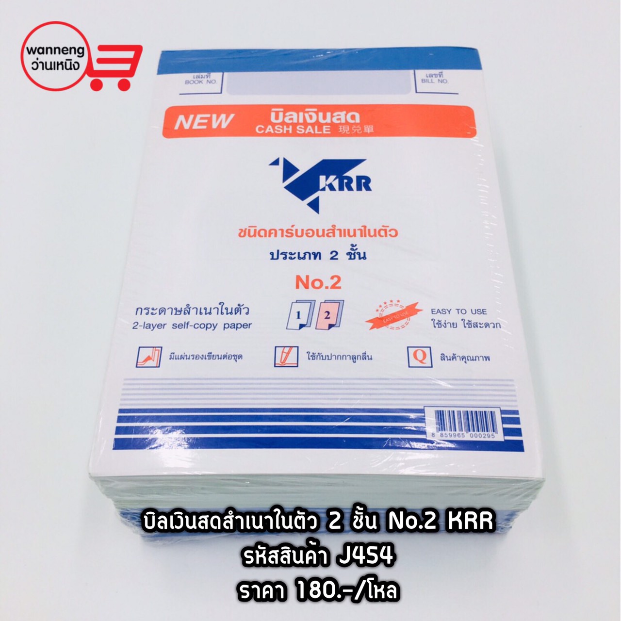 J454 บิลเงินสดสำเนาในตัว 2 ชั้น No.2 KRR 1 โหล