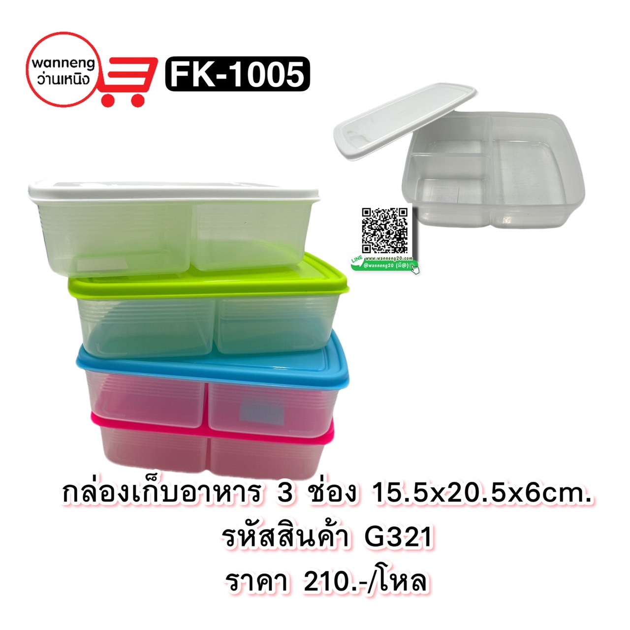 G321 กล่องเก็บอาหาร3ช่อง 15.5x20.5x6cm. FK-1005 1 โหล