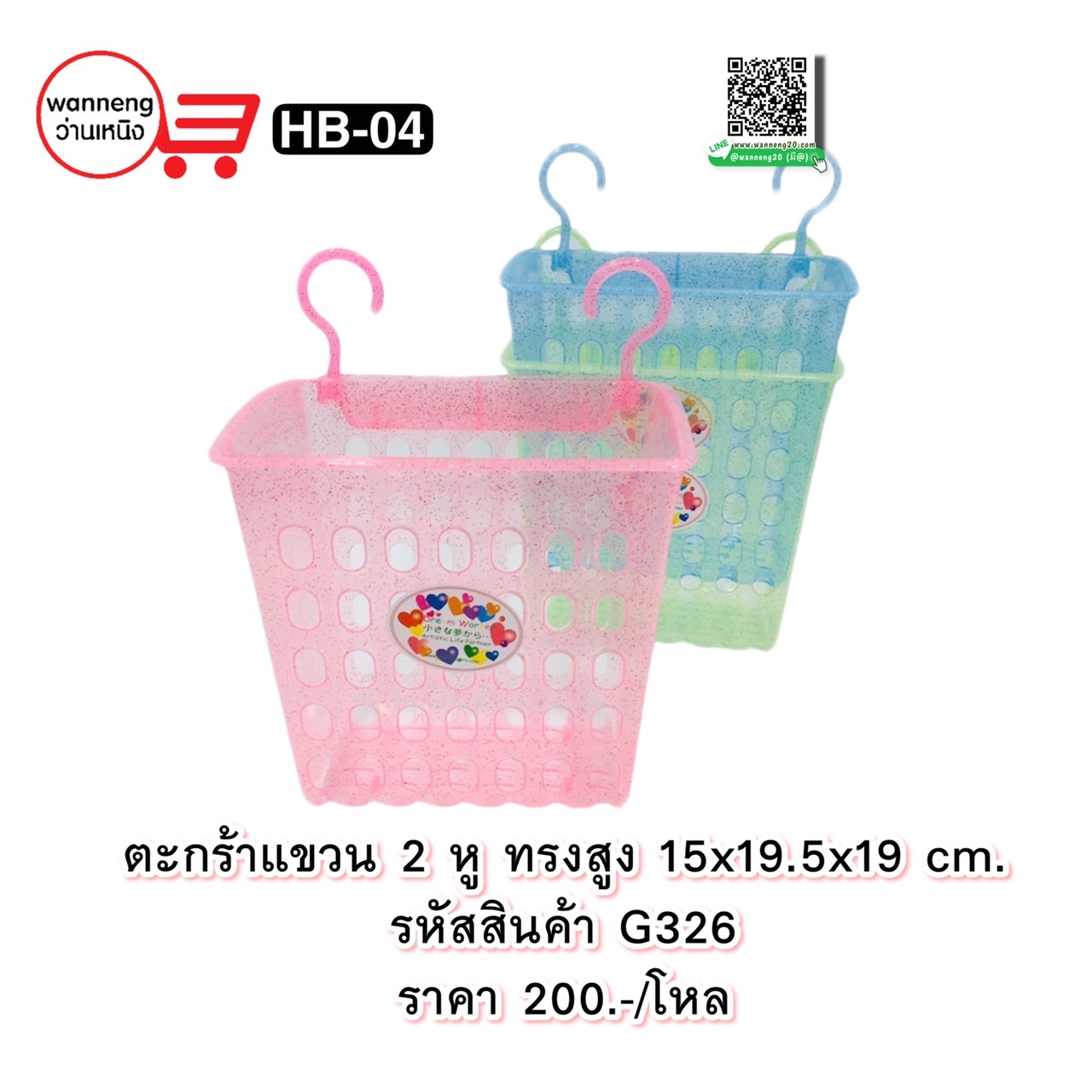 G326 ตะกร้าแขวน2หูทรงสูง 15x19.5x19cm. HB-04 1 โหล