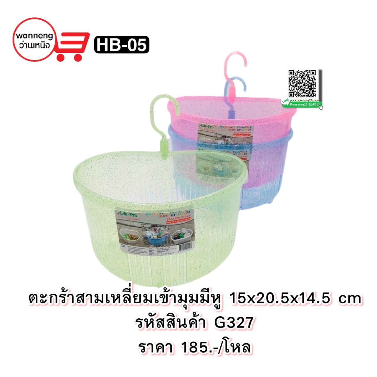 G327 ตะกร้าสามเหลี่ยมเข้ามุมมีหู 15x20.5x14cm. HB-05 1 โหล