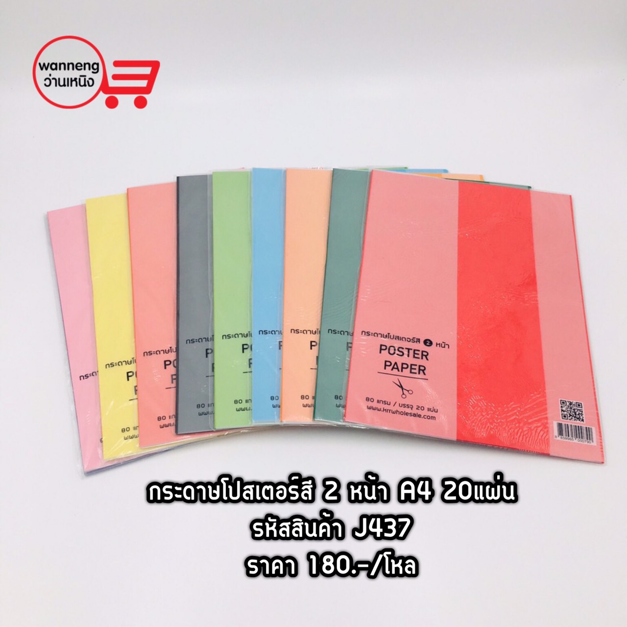 J437 กระดาษโปสเตอร์สี2หน้า A4 20 แผ่น 1 โหล