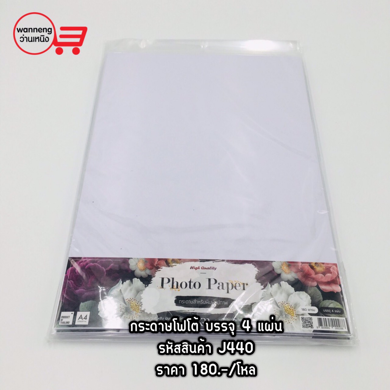 J440 กระดาษโฟโต้ บรรจุ 4 แผ่น 1 โหล