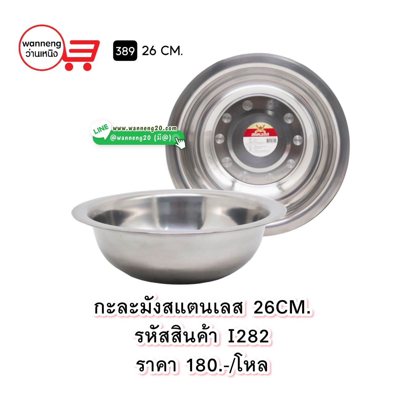 I282 กะละมังสแตนเลส 26 ซม. 389 1 โหล
