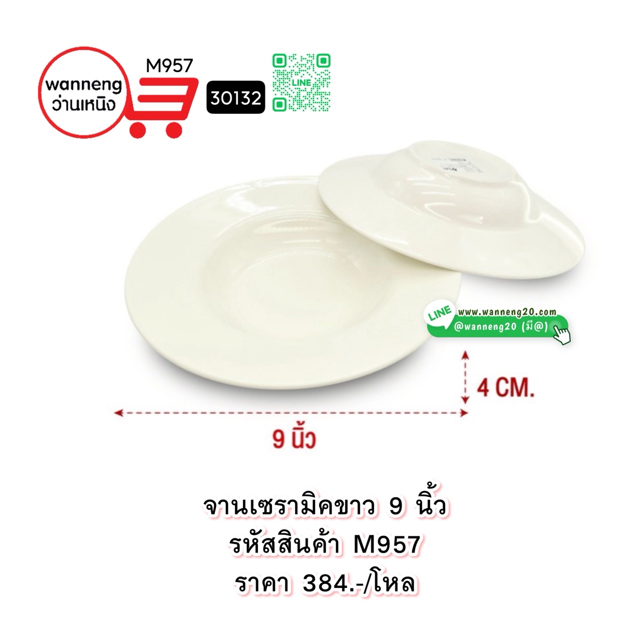 M957 จานเซรามิคขาว 9 นิ้ว 30132 1 โหล