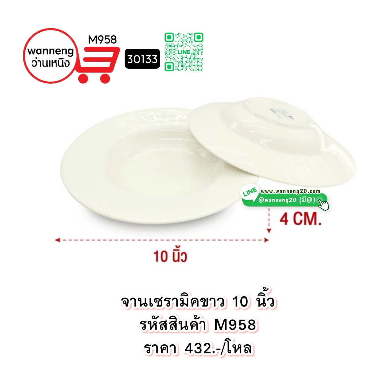 M958 จานเซรามิคขาว 10 นิ้ว 30133 1 โหล